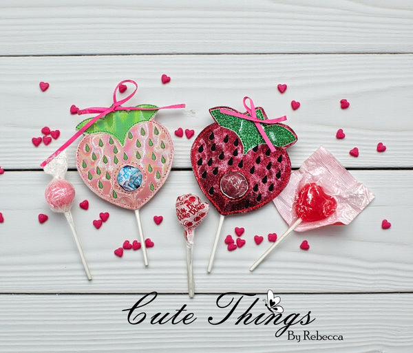 Strawberry Raw Edge Leaf Applique Lollipop Valentines Holder